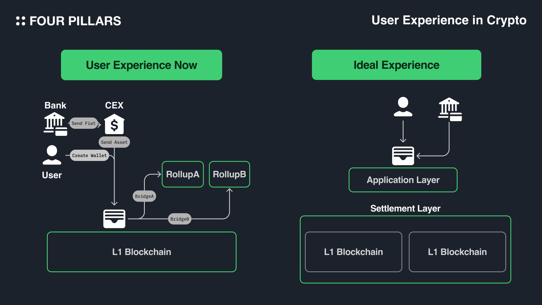 The user needs to understand lots of apsects of blockchain to start navigate the ecosystem. Also, it is essential to understand how each blockchain differ, as each has different account state, how contracts are deployed, etc. This means that as we are entering the phase of 1000 independent blockchains and rollups, these issues will get worse.