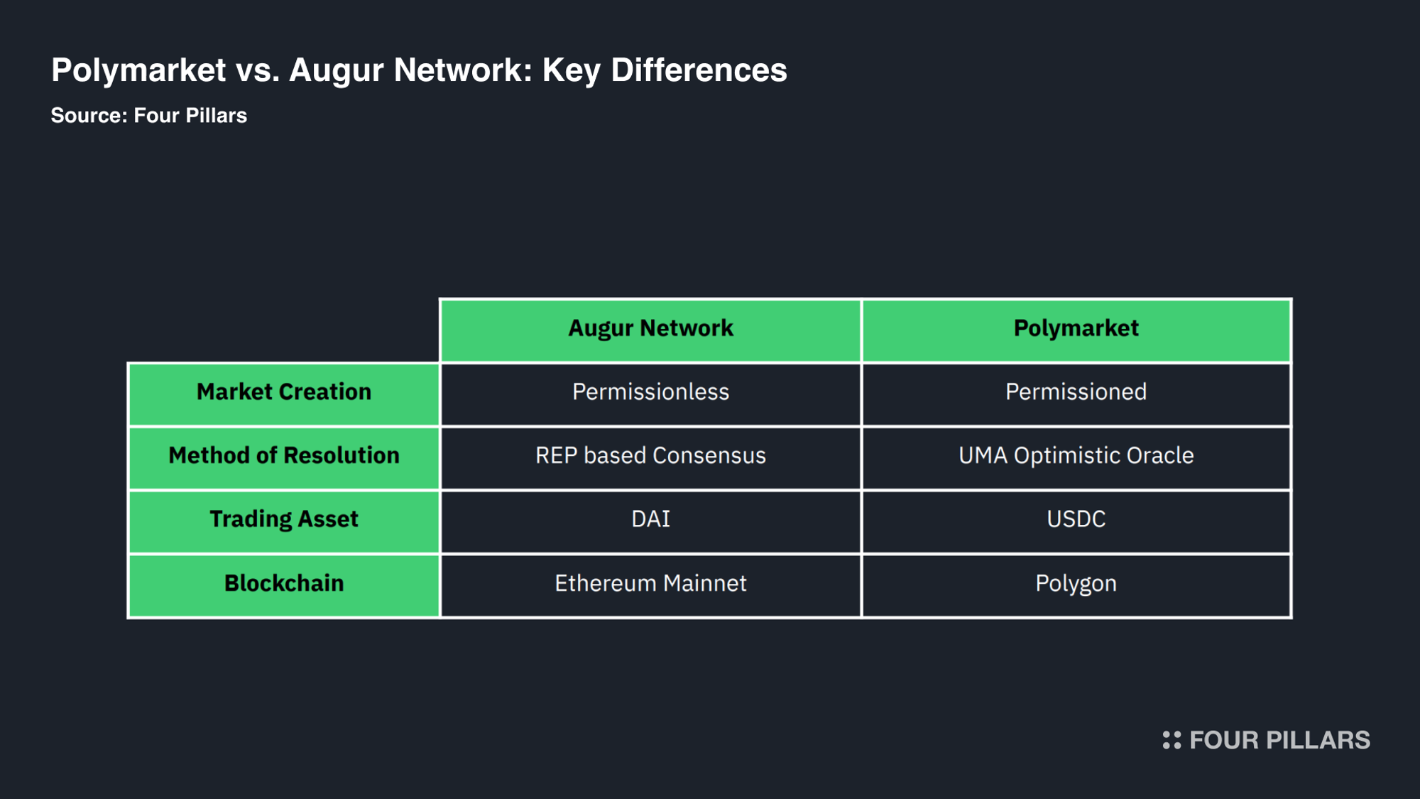 In 2018, Augur faced controversy over assassination betting markets. Prediction markets, by their nature, are closely tied to real-world events, which can lead to errors from ambiguous market definitions and unnecessary controversy.