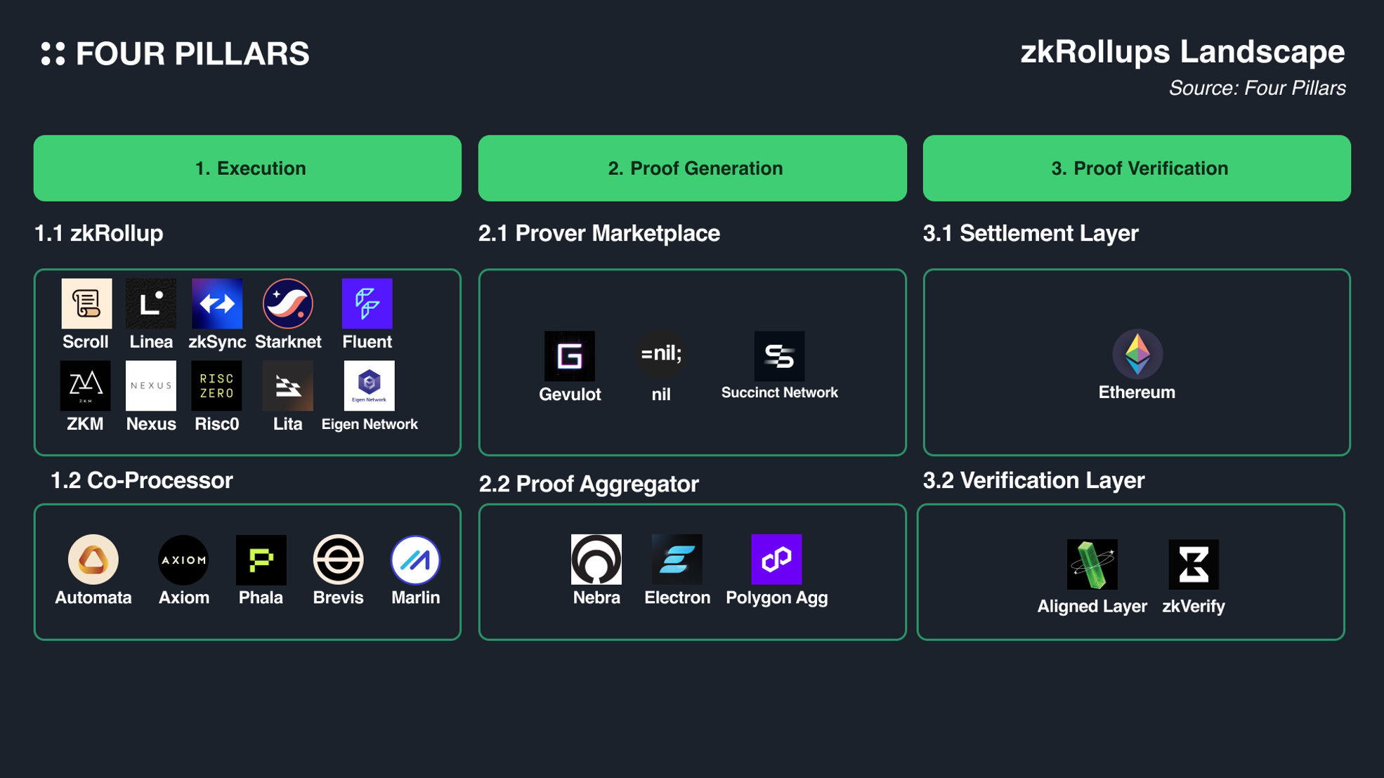 There are projects dedicated to each process to make zkRollups operate more efficiently. In the next section, let’s dive into what each process is about and which projects are working on them.