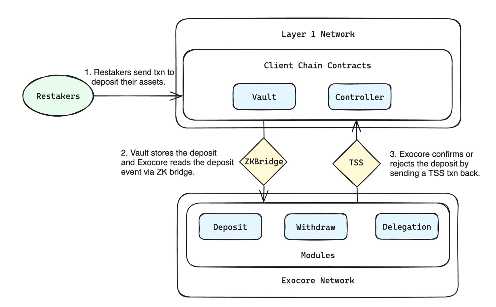 Trustless 브리징 및 ZK Light Client: Exocore는 ZK 증명을 사용하여 블록체인 간에 안전하고 무신뢰형 브리징을 제공합니다. 해당 브리지는 클라이언트 체인의 상태 변화를 안전하고 효율적으로 검증한다.