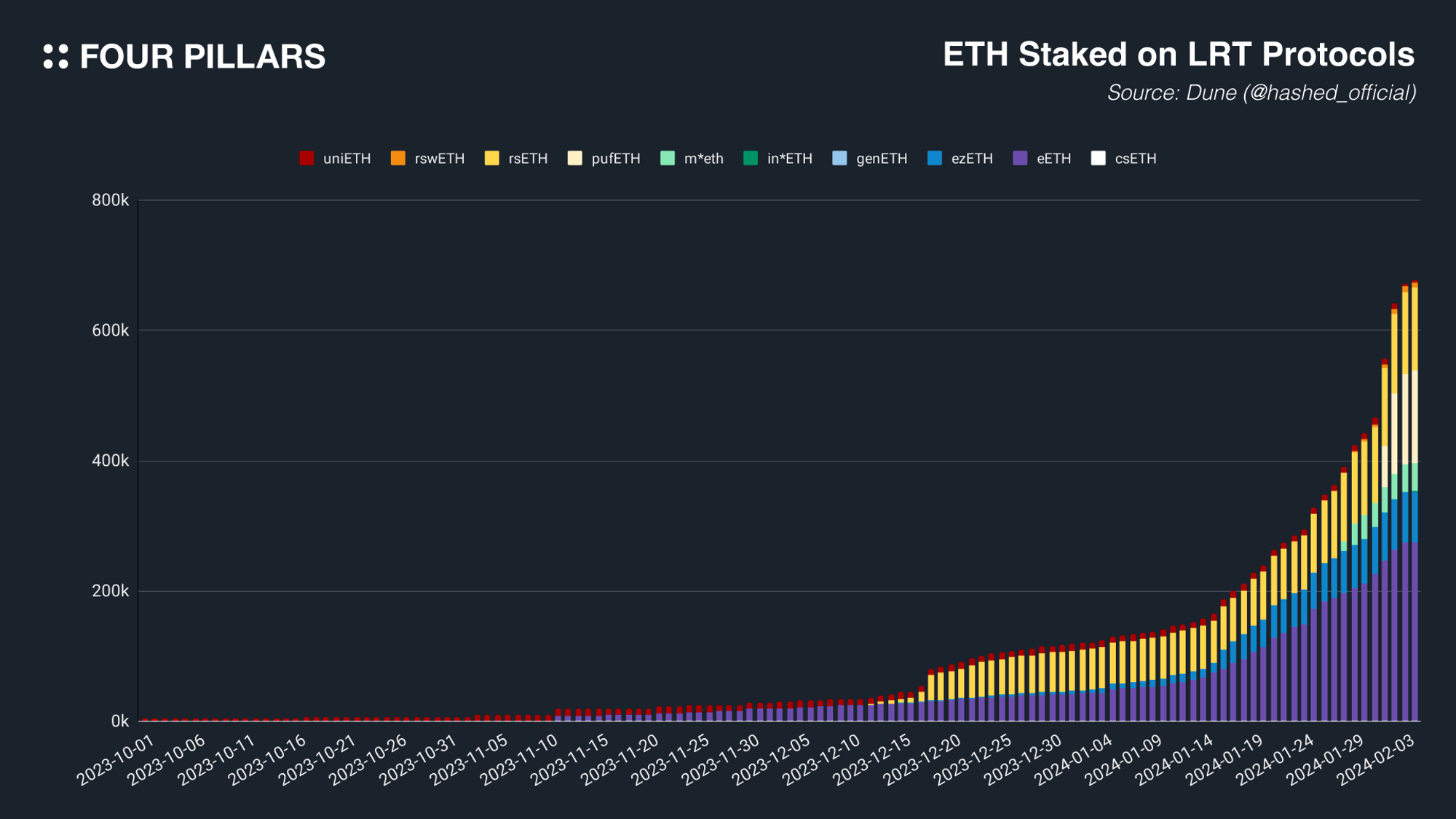 작년 말을 기점으로 Restaking과 Liquid Restaking 관련 시장은 빠른 속도로 성장하고 있다. 이러한 추세는 한 동안 이어질 것으로 보인다. EigenLayer에 의해 도입된 개념인 'Restaking'은 사용자들로 하여금 자신의 이더나 스테이킹된 자산(예: stETH)을 예치하고, EigenLayer 기반의 AVS 프로토콜을 지원할 수 있도록 한다.