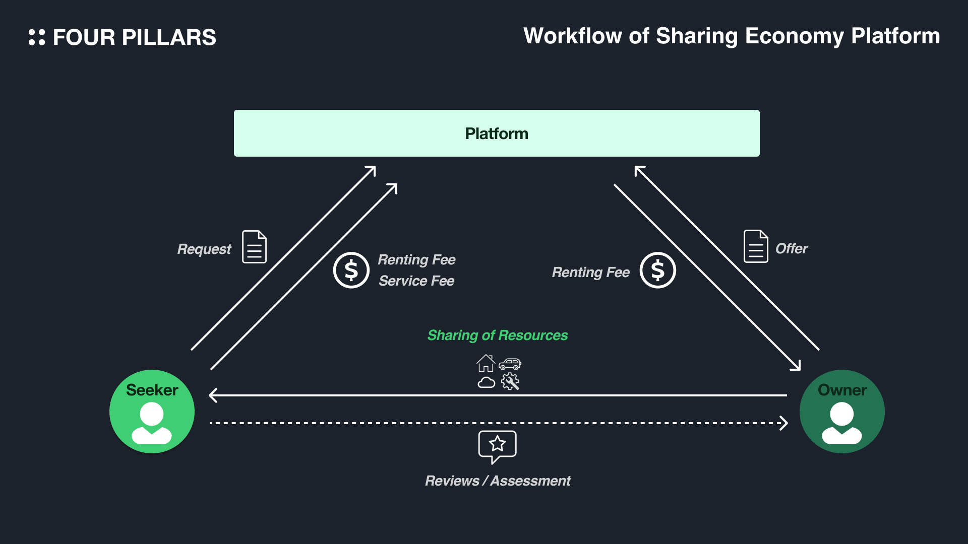 공유경제는 단순히 개인의 자원을 넘어서 산업 전반의 자원을 아우르는 소비문화이자 경제시스템이다. 따라서 디지털 시대에 잉여 자원을 활성화시키며 사회적 부의 증가를 이끄는 새로운 경제 발전의 원동력이 될 수 있다. 오늘날에는 개인뿐만 아니라 스타트업 및 대기업들까지 광범위한 주체들로하여금 각각이 필요한 기술, 데이터, 소프트웨어, 하드웨어 등 여러 공유 자원들을 활용할 수 있도록하는 다양한 플랫폼 서비스들이 존재한다.