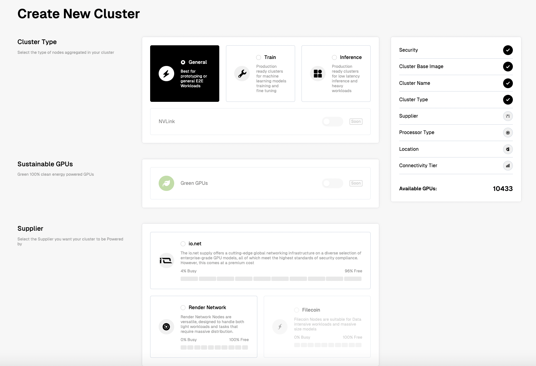 *참고로, 수정자 옵션(Modifier Options)은 io.net이 공급자가 전체 클러스터의 성능을 높이기 위해 배치한 추가 서비스 및 하드웨어로 인식하는 항목이다(e.g., 대역폭(Bandwidth), 지역(Location), GPU Interlink 옵션, Node Disk 속성들).