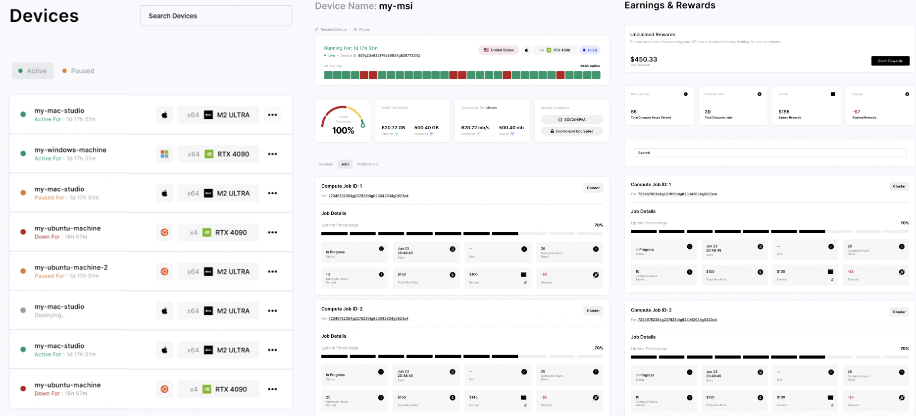 우선, 가장 가시적으로 IO.NET이 전통적인 클라우드 서비스에 드러나는 차별점은 누구나 기술적 전문성이 없이도 클릭 몇 번으로 쉽게 자신의 유휴 컴퓨팅 자원을 공유하여 보상을 받을 수 있다는 것이다. 즉, 보상이 적절히 주어진다는 전제하에 개인이 자신의 유휴 자원을 공유하는데에 접근성이 대폭 낮아졌으므로, 공급 측면에서 풍부한 컴퓨팅 자원들이 쉽게 부트스트래핑 될 수 있다. 따라서 이용자들은 기존의 클라우드 서비스 상에서 희소한 GPU들을 확보하기 위해 별도의 장기계약을 맺거나 긴 대기시간을 가질 필요없이 자신이 원하는 GPU들을 유연하게 조합하여 클러스터를 빠르게 구성할 수 있다.