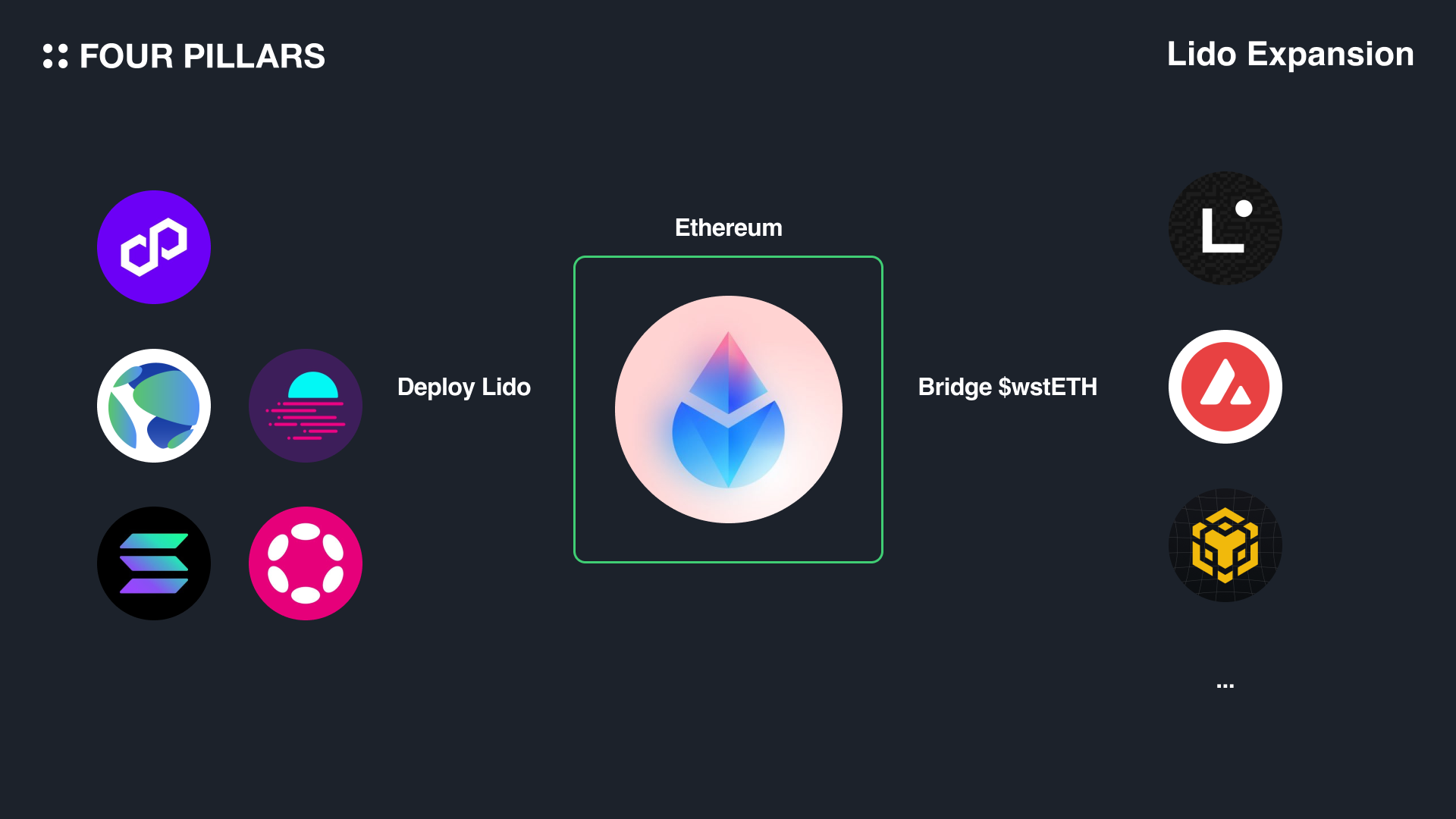 ์ด๋๋ฆฌ์ ์ ๋์ฑ ์คํ ์ดํน ๋ถ๋ฌธ์ ์ ๋์ ์ธ ํ๋ก์ ํธ์ธ ๋ผ์ด๋ ํ์ด๋ธ์ค๋ ์ด๋๋ฆฌ์์ ๋์ด ์ฌ๋ฌ ์ํ๊ณ๋ก ํ์ฅํ๋ ์ ๋ต์ ํผ์น๊ณ ์๋ค. ์ฌ๋ฌ ํ์ฅ ๊ณํ์ ํตํด ๋ผ์ด๋๋ ์๋ผ๋์ ๊ฐ์ ๋ ์ด์ด 1 ๋ธ๋ก์ฒด์ธ์ ํฌํจํ์ฌ ํด๋ฆฌ๊ณค, ์๋นํธ๋ผ, ์ตํฐ๋ฏธ์ฆ๊ณผ ๊ฐ์ ๋ ์ด์ด 2 ๋ธ๋ก์ฒด์ธ๊น์ง ์ฌ์ ์ ํ์ฅํ๊ฒ ๋์๋ค. ๋ผ์ด๋์ ํ์ฅ ์ ๋ต์ ํฌ๊ฒ ๋ ๊ฐ์ง ์ ๊ทผ ๋ฐฉ์์ผ๋ก ๊ตฌ์ฑ๋์๋ค. ์ฒซ์งธ, ํ ๋ผ๋ ์๋ผ๋์ ๊ฐ์ ์ถ๊ฐ L1 ์ํ๊ณ์ ์ ์ฌํ ๊ตฌ์กฐ์ ์ฝ๋๋ฒ ์ด์ค๋ฅผ ๋ฐฐํฌํ๋ค. ๋์งธ, ๋ธ๋ฆฟ์ง ์ ๊ณต์์ ํํธ๋์ญ์ ๋งบ์ด ๋ผ์ด๋์ ํ ํฐ์ธ wstETH ์ stETH์ BNB ์ฒด์ธ์ด๋ ๋ฆฌ๋ค์ ๊ฐ์ ๋ค๋ฅธ ๋ธ๋ก์ฒด์ธ์ผ๋ก ์ฝ๊ฒ ์ ์กํ ์ ์๋๋ก ํ๋ค.