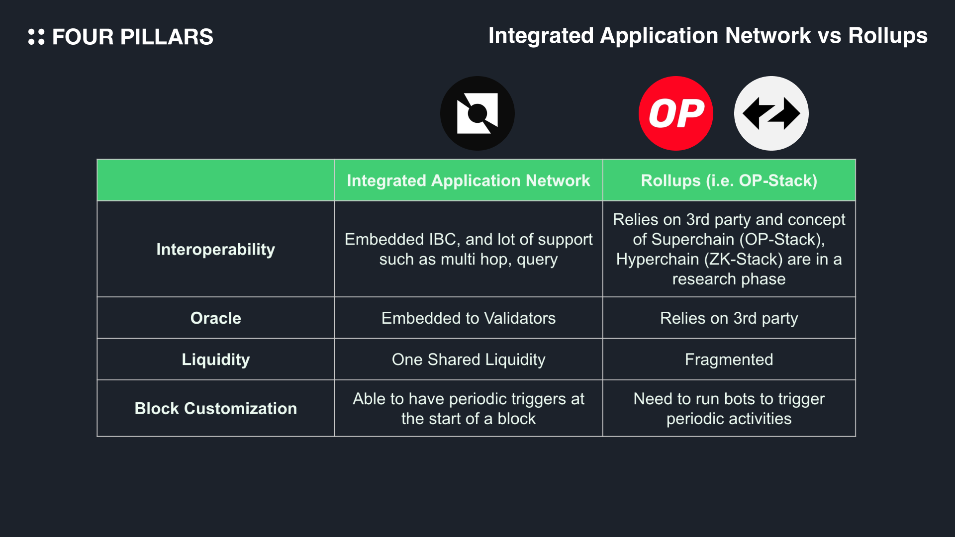 ๋ํ, ๊ฐ๋ฐ์๋ค์ด ๋ค์ดํฐ๋ธ ์๋ํ, ํฌ๋ก์ค์ฒด์ธ ์ํธ์ด์ฉ์ฑ, MEV ํ์, ์ฌ์ฉ์ ์ง์ ์์๋ฃ ๋ฐ ๋ฉคํ ๋ฑ ์ฑ์ฒด์ธ์ด ์ ๊ณตํ ์ ์๋ ๊ธฐ๋ฅ์ ํฌ์ํ์ง ์๊ณ ๋ ์ค๋งํธ ์ปจํธ๋ํธ ๊ธฐ๋ฐ ๋์ฑ์ ๋ฐฐํฌํ ์ ์๋ โํตํฉ ์ ํ๋ฆฌ์ผ์ด์ ๋คํธ์ํฌโ๋ฅผ ๊ตฌ์ถํ๋ค. ํตํฉ ์ ํ๋ฆฌ์ผ์ด์ ๋คํธ์ํฌ์์ ๊ตฌ์ถํ ์ ์๋ ๋ช ๊ฐ์ง๋ฅผ ์ดํด๋ณด์.