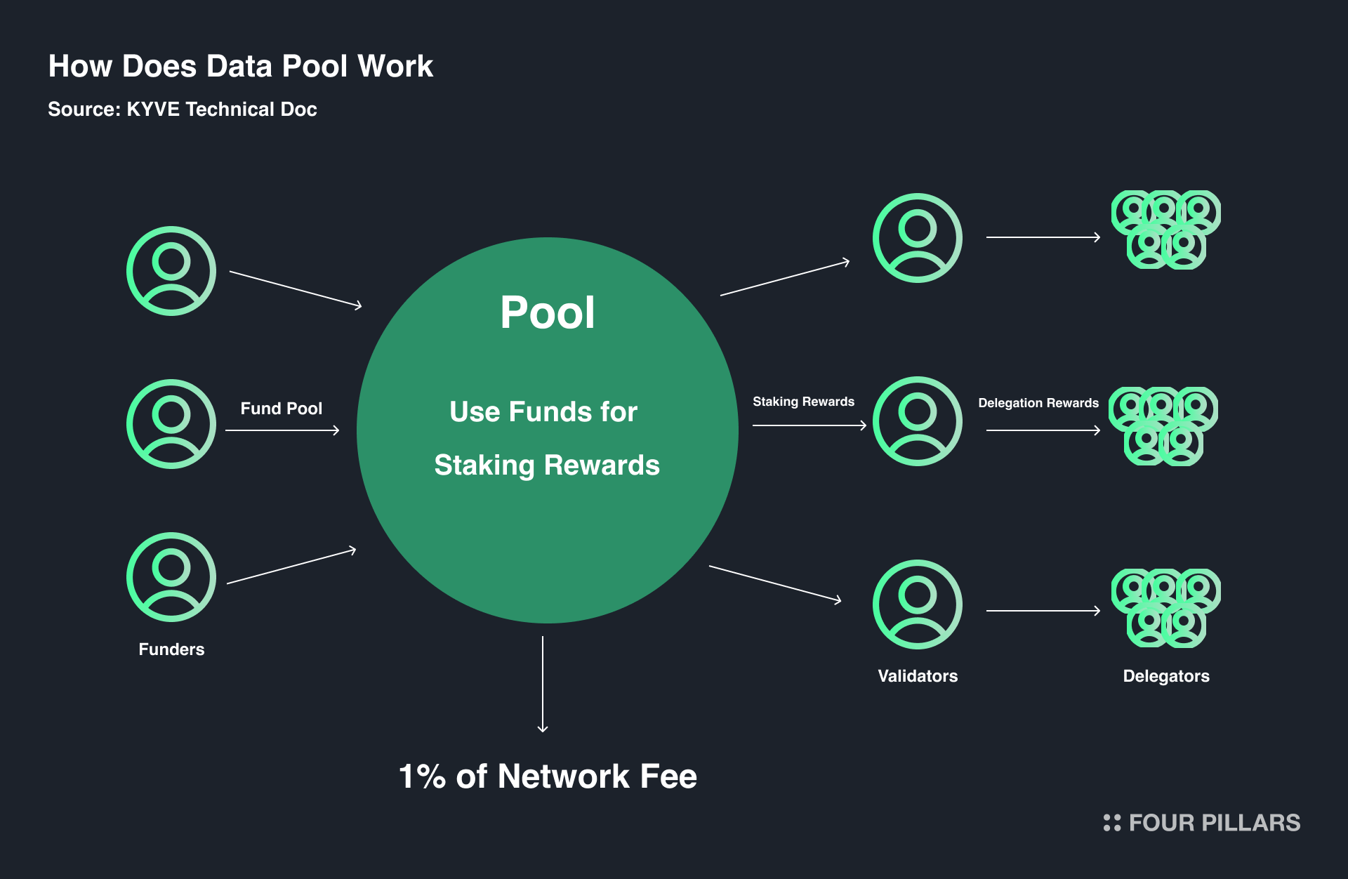 카이브 데이터 풀의 보상은 후원자(funder)들로부터 채워지는데, 카이브가 검증하고 저장하는 데이터는 결과적으로 누군가가 필요로하는 데이터들이기 때문에, 해당 풀을 지원해주는 주체(funder)들은 카이브가 대신 검증해주고 저장해주는 데이터들을 원하는 프로젝트들이나 재단이 될 가능성이 높다(물론 후원자(funder)는 누구나 될 수 있다.) 카이브를 통해 후원자들은 효율적으로 검증된 데이터에 접근할 수 있고, 카이브의 프로토콜 벨리데이터들은 자신들이 데이터를 가져오고, 저장하고, 검증하는 행위들에 대한 보상을 받을 수 있다.