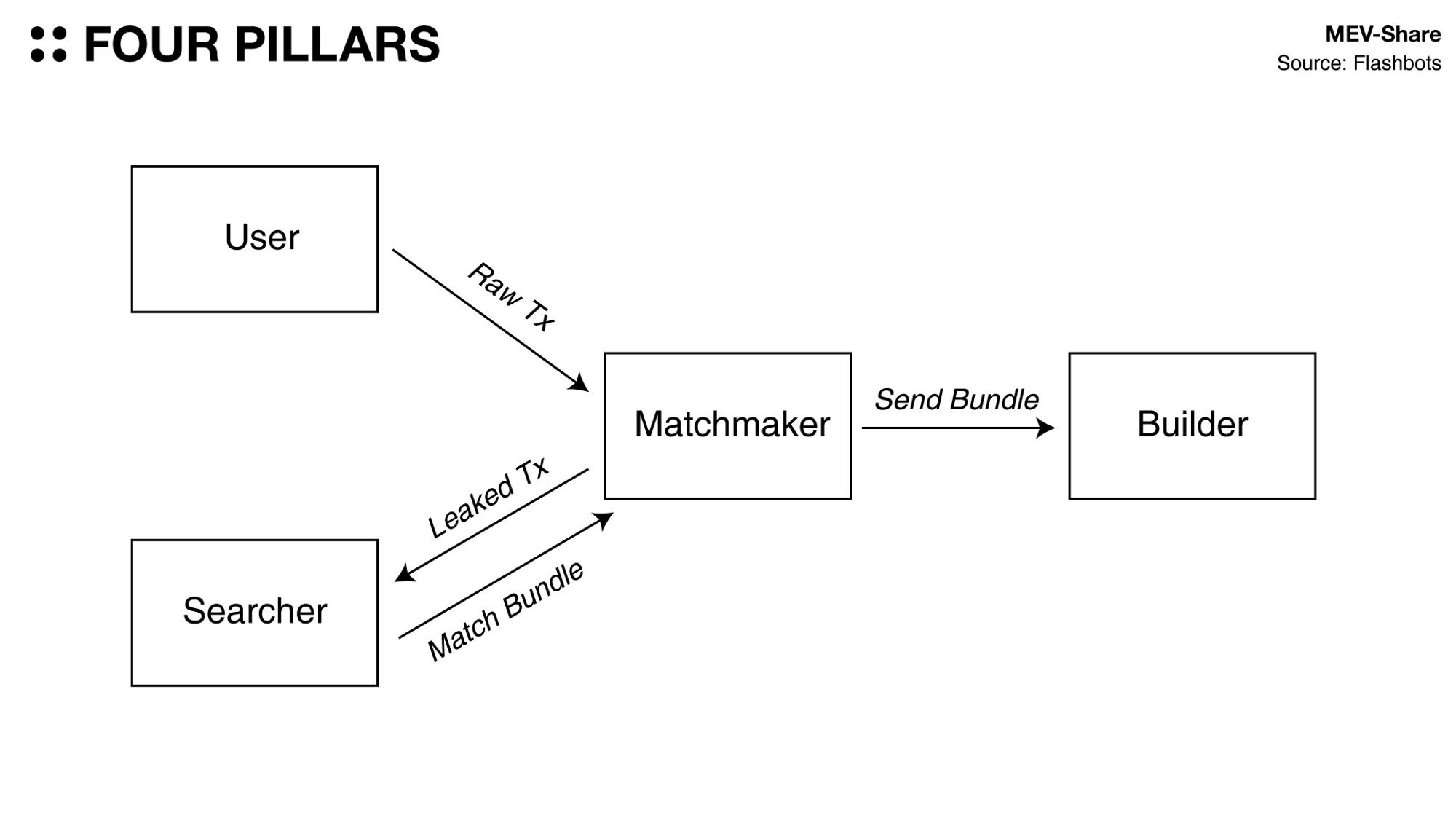 User, Searcher, Builder 외에 Matchmaker라는 새로운 주체가 등장하며, Matchmaker는 트랜잭션의 전달, 최종 bundle 생성, User 트랜잭션의 보호 등의 역할을 수행한다.