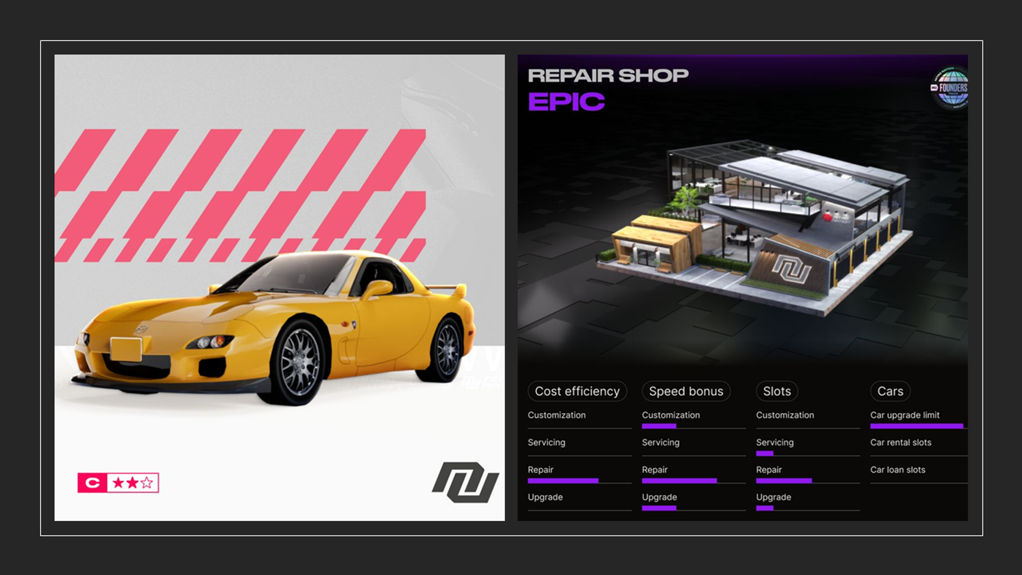 ๋จผ์ , ํ์ฌ๋ ์ด 140 ์ฌ๊ฐ์ ์ฐจ ์ข ๋ฅ๋ค์ด ๋ผ์ด์ผ์ฑ๋์ด ์๊ณ , ๋งค๋ 70๊ฐ๊ฐ ๋๋ ์ฐจ๊ฐ ์ถ๊ฐ๋ ์์ ์ด๋ค. ์ฐจ์ ๋ํด์ ์ด 5๊ฐ์ ํฐ์ด์ ๊ฐ ํฐ์ด์๋ 3๊ฐ์ ๋ ๋ฒจ์ด ์กด์ฌํ๊ณ , ์ฐจ๋ค์ ์ข ๋ฅ์ ๋ฐ๋ผ์ ์ฒ์๋ถํฐ NFT ํํ์ธ ์ฐจ๋ ์๊ณ , ์๋๋ฉด ํน์ ์์ค์ ์ ๊ทธ๋ ์ด๋๋ฅผ ์งํํ์ฌ์ผ๋ง NFT๊ฐ ๋๋ ์ฐจ๋ค๋ ์กด์ฌํ๋ค. ์ฒ์๋ถํฐ NFT ํํ์ธ ํ์ ์๋์ ์ฐจ๋ค์ ์ค์ง ์นด๋ ํฉ์ด๋ Mythical Marketplace๋ฅผ ํตํด์ ์ป์ ์ ์๊ณ , ๋น์ฐํ ํผํฌ๋จผ์ค๊ฐ ํจ์ฌ ์ข๋ค.