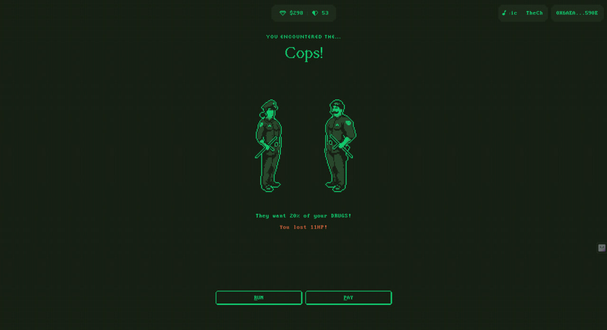 ํด๋น ๊ฒ์์ 1984๋ ์ ๋์๋ ๋น๋์ค ๊ฒ์ โDrug Warsโ์ ์จ์ฒด์ธ ๋ณต๊ฐํ์ด๋ผ๊ณ ๋ณผ ์ ์๋ค. ์ด 10์ผ์ด๋ผ๋ ๊ธฐ๊ฐ ๋์ ํ๋ ์ด์ด๋ $2000์ 100์ ์ฒด๋ ฅ ๊ฐ์ ๊ฐ์ง๊ณ ๋ด์์ ์ฌ๋ฌ ์ง์ญ๋ค์ ๋์๋ค๋๋ฉฐ ์ฝ์ ์ฌ๊ณ , ํ์์ ์ต์ข ์ ์ผ๋ก ๊ฐ์ฅ ๋ง์ ์์ต์ ๋ด๋ ๊ฒ์ ๋ชฉํ๋ก ํ๋ค. ์ด๋, ๋ด์์ ๊ฐ ์ง์ญ๋ค์ ๊ฐ ์ฝ๋ณ๋ก ๊ฐ์ด ๋ฌ๋ผ์, ํน์ ์ง์ญ์์ ์ธ๊ฒ ์ฐ ๋ค์์, ๊ทธ ๋ค์๋ ๋ค๋ฅธ ์ง์ญ์ผ๋ก ์ฎ๊ธด ๋ค์์ ๋น์ธ๊ฒ ํ๋ ๊ฒ์ด ์ค์ํ๋ค.