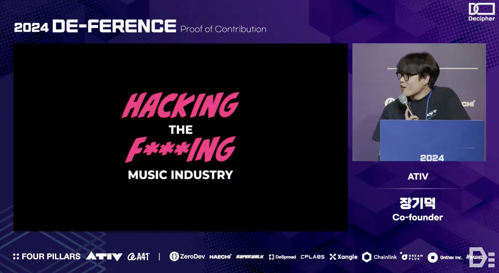ATIV 팀의 Gideok Jang(장기덕)은, 프로덕트를 빌딩하는 관점에서 크립토의 문화 현상에 대한 이해가 왜 선행돼야하는 지에 대해 설명하며 ATIV 팀이 만들어진 컨텍스트와 비전, 그리고 ATIV 팀이 향후 이루고 싶은 목표에 대해 공유하는 자리를 가졌다. IP Acceleration을 통해 음악 산업의 문화를 재편하고자하는 비전을 가진 ATIV 팀의 목표는 크게 세 가지로 요약할 수 있다 - 첫째, $ATIV 토큰을 통해 저작인접권의 개념과 가치를 대중에게 널리 알리는 것이다. 둘째, 이를 통해 아티스트들의 IP를 대중이 쉽게 접근할 수 있도록 하고, 그 가치를 공정하게 평가받도록 하는 것이다. 마지막으로, 이렇게 평가된 IP를 수익을 창출하는 자산으로 전환하여 다양한 금융활동에 활용할 수 있도록 지원하는 것이다.