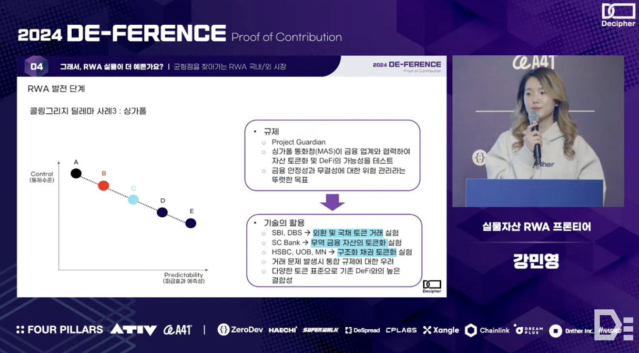 Q: 한국에서 STO 관련한 많은 시도들이 이루어져온 것으로 아는데 현실로 구현된 사례가 많이 안보이는 것 같다. 한국의 RWA 관련해서는 규제의 진척 정도가 어떤 지 구체적으로 공유해줄 수 있는가?