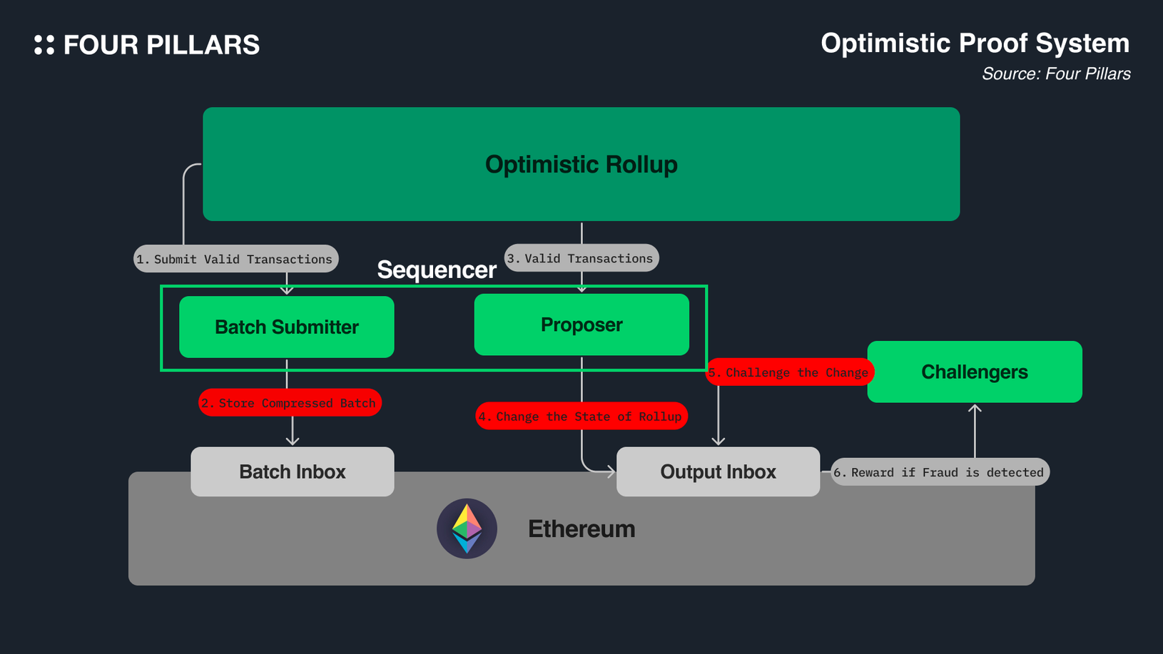 ์ด ๊ณผ์ ์ ์ ์์๊ฐ L2 ํธ๋์ญ์ ์์ ๋กค์ ๋ธ๋ก์ ๊ตฌ์ฑํ๊ณ ์ด๋ฅผ ์ด๋๋ฆฌ์์ L1 ํ์ด์ฝ ์ปจํธ๋ํธ์ ์ ์ํ๋ ๊ฒ์ผ๋ก ์์๋๋ค. ์ด๋ ๊ฒ ์ ์๋ ๋ธ๋ก์ ์ด๊ธฐ ์ ํจ์ฑ ์ฆ๋ช ์์ด L1 ์ปจํธ๋ํธ์ ์ถ๊ฐ๋๋ค. ๊ทธ๋ฐ ๋ค์ ์ฆ๋ช ์๋ ํ์ด์ฝ ํ ํฐ์ ์คํ ์ดํน์ ํ ํ ์ ์๋ ๋ธ๋ก์ ์ ํจ์ฑ์ ๋ํด ์ด์๋ฅผ ์ ๊ธฐํ ์ ์๋ค. ์ฑ๋ฆฐ์ง ๊ธฐ๊ฐ ๋ด์ ์ด์๋ฅผ ์ ๊ธฐํ์ง ์์ผ๋ฉด ๋ธ๋ก์ ์ ํจํ ๊ฒ์ผ๋ก ๊ฐ์ฃผ๋์ด L1์์ ์ต์ข ํ์ ๋๋ฉฐ, ์ฆ๋ช ์์ ๋ณธ๋๋ ๋ฐํ๋๋ค. ๋ธ๋ก์ ์ด์๋ฅผ ์ ๊ธฐํ๋ ๊ฒฝ์ฐ, ๋ธ๋ก์ ์ ํจ์ฑ์ ํ์ธํ๊ธฐ ์ํด ZK ์ฆ๋ช ์ด ํ์ํ๋ค. ์ต์ด ์ฆ๋ช ์์ด๋ ๋์ ์์ด๋ , ์ณ์๋ ์ฆ๋ช ์๋ ์์ ์ ๋ณธ๋์ ๋ณด์์ ๋๋ ค๋ฐ๊ฒ ๋๋ค. ๋ฐ๋ฉด, ํ๋ฆฐ ๋น์ฌ์์ ๋ณธ๋๋ ์ญ๊ฐ๋์ด ๋ถ๋ถ์ ์ผ๋ก ์๊ฐ๋๋ค.