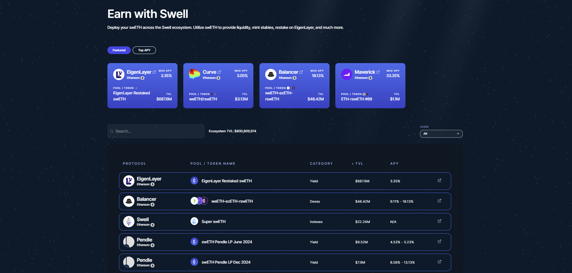 Pendle Finance: swETH, rswETH